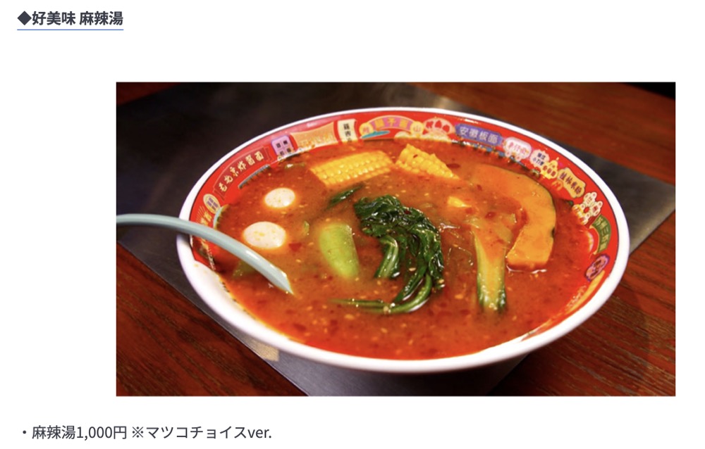人気の「マツコチョイスバージョン」(麻辣湯 1,000円)もご提供中です。